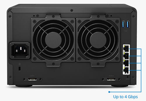 DS1515 搭載四核心處理器,結(jié)合 2GB DDR3 內(nèi)存,在啟動(dòng) Link Aggregation 下,可帶來(lái)每秒讀取過(guò) 403.77MB、寫(xiě)入過(guò) 421.85MB 的卓越傳輸效能1。 強(qiáng)大的 DS1515 硬件配備可處理大量數(shù)據(jù)存取需求,并為所有聯(lián)機(jī)的客戶(hù)端裝置持續(xù)提供高效表現(xiàn)。
