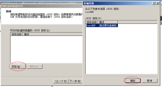 在iSCSI目標欄出現(xiàn)testRDP目標